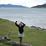 Maar niet alvorens nog eens een flinke tocht te paard te maken!! Dit keer wordt het een heuse dagtocht, inclusief asado 's middags. Stephanie en ik, een Spaans pasgetrouwd stel, een Turks meisje, de chauffeur van het busje en de gids, we zetten ons in het zadel en beginnen aan de wandeling, in het gezelschap van vier honden van de estancia. Het landschap is prachtig en overal komen we 'wilde' - althans binnen de kilometerslange lage omheining van de estancia - koeien, paarden en schapen tegen, en zelfs lama's. De honden zien we even later een vos achterna de heuvel afrennen, maar ze maken geen kans om het beestje in te halen. We kruipen steile hellingen op, steken rivieren over, en op elke ondergrond houden de paarden hun evenwicht, het is ongelofelijk.